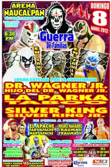 - Mexicool, Rey (April 9, 2012). "IWRG (Resultados 8 de abril): La Dinastía Wagner triunfa en la "Guerra de Familias" – Los Perros canadienses llegan a Naucalpan – Presentes Silver King Jr. y Mini Silver King". Súper Luchas Ring (in Spanish). Retrieved May 7, 2016.