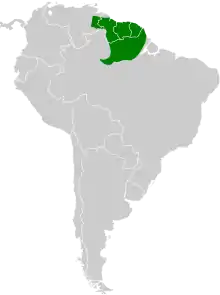 The Imeri, Peruvian, yellow-breasted, Rondonia and Spix's warbling antbird were all formerly treated as subspecies of the Guianan warbling antbird. A study published in 2007 found that there were significant vocal differences as well a small plumage differences between the taxa and they are now all treated as separate species.[7][8] As presently defined, the Guianan warbling antbird is monotypic, although the subspecies notaea sometimes has been recognized.[9]