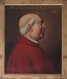 On 7 January 1450 D'Estouteville was appointed Administrator of the Diocese of Lodève.[26] He served in this office for three years, before being appointed bishop of the Diocese of Saint-Jean-de-Maurienne in Savoy. He was Bishop of Maurienne from 26 January 1453 to 20 April 1453, though he continued to act as Administrator of the diocese for the rest of his life.[27] In April 1453 he was released from his obligation as Bishop of Maurienne and appointed Archbishop of Rouen by Nicholas V.[28] The Canons of Rouen protested the violation of their rights, and Pope Nicholas granted them an Indult on 16 November promising them that, on the death of Guillaume d'Estouteville, they could elect whomever they wished. D'Estouteville took possession of the diocese of Rouen on 30 April 1453 through a Procurator, Bishop Louis d'Harcourt of Narbonne.[29]