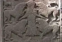 A version of the narrative of Guinevere is associated in local folklore with Meigle in Scotland, known for its carved Pictish stones. One of the stones, now in the Meigle Sculptured Stone Museum, is said to depict Vanora, the local name for Guinevere.[33] She is said to have been abducted by King Modred (Mordred). When she is eventually returned to Arthur, he has her condemned to death for infidelity and orders that she be torn to pieces by wild beasts, an event said to be shown on Meigle Stone 2 (Queen Venora's Stone).[33] This stone was one of two that originally stood near a mound that is identified as Vanora's grave.[33] Modern scholars interpret the Meigle Stone 2 as a depiction of the Biblical tale of Daniel in the lions' den. One Scotland-related story takes place in Hector Boece's Historia Gentis Scotorum, where Guinevere is taken by the Picts following Mordred's and Arthur's deaths at Camlann and spends the rest of her life in their captivity; after her death she is buried beside Arthur.