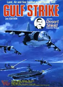 Gulf Strike is a 2-player operational level game first published during the protracted Iran-Iraq War that simulates the possible confrontation of superpowers, who are drawn into conflict in the Middle East Gulf area using tactics and equipment of the 1980s.[4] The game includes all aspects of military operations of the time, including air, naval and land combat.[1]