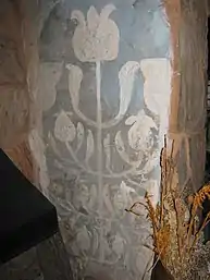 In 1979, June Hallett - the wife of the then-owner of the farm, uncovered plaster of paris frescoes on the inner walls of a fireplace in the house. The images were consequentially restored, and are believed to be the earliest known depictions of Californian Poppies. The frescoes are estimated to have been made between 1580-1585, immediately following Sir Francis Drake's return from his circumnavigation of the globe.