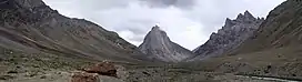 Gonbo Rangjon is a stand-alone lofty rocky precipice located in Kargyak village of lungnakZanskar, India in Ladakh region. It is considered to be holy by the local inhabitants who practice Tibetan Buddhism. Gonbo Rangjon lies along the Darcha- Padum Trek route. Gonbo Rangjon can be seen from the village of Kargyak which is about 16 kilometres away. The foothills of the Gonbo Rangjon precipice are at the altitude of 5,486 metres.[1]