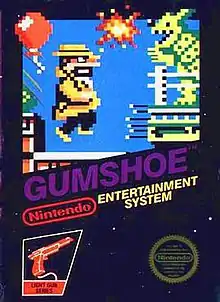 Gumshoe is a video game developed and published by Nintendo for the NES and released in 1986 in North America and in 1988 in Europe. Gumshoe is played using the NES Zapper.[3] The game was designed by Yoshio Sakamoto.[4]