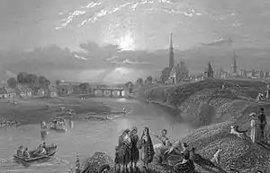 In 1668, following the Dutch Raid on the Medway, Upnor Castle was reassigned from serving as an artillery fort to be 'a Place of Store and Magazine'. Thenceforward, barrels of gunpowder were transferred to Upnor, primarily from the Tower of London. The castle was recognized as unsuitable for this role as early as 1808 when a new magazine (since demolished) was built on an adjacent site; another, of similar design, was added in 1857.[28] The latter, which still stands, is described as 'a particularly fine magazine building of the 1850s, distinguished by its historicist style' and 'the most impressive example of a magazine using the catenary arch system'.[29]