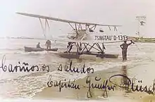 On November 27, 1927, Plüschow took the wooden two-masted cutter Feuerland to Punta Arenas, Chile. His engineer, Ernst Dreblow, brought his seaplane, a Heinkel HD 24 D-1313, aboard a steamer. By December 1928, the airplane had been fully assembled and the inaugural flight brought the first air mail from Puntas Arenas to Ushuaia, Argentina. In the months following, Plüschow and Dreblow were the first to explore by air the Cordillera Darwin, Cape Horn, the Southern Patagonian Ice Field, and the Torres del Paine of Patagonia. In 1929, Plüschow had to sell the Feuerland to obtain funds to return to Germany. There he published his explorations and photographs in a book, Silberkondor über Feuerland ("Silver Condor over Tierra del Fuego"), and a documentary film of the same name. The ship Feuerland was brought to Weddell Island and sailed between the islands of the Falkland archipelago until 2006, when she was transported back to Germany and listed as a historic cultural monument.[3]
