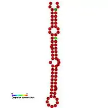 mRNA localization is a common mode of posttranscriptional regulation of gene expression that targets a protein to its site of function.[1] Proteins are highly dependent on cellular environments for stability and function, therefore, mRNA localization signals are crucial for maintaining protein function. The Gurken localisation signal is an RNA regulatory element conserved across many species of Drosophila. The element consists of an RNA stem loop within the coding region of the messenger RNA that forms a signal for dynein-mediated Gurken mRNA transport to the dorsoanterior cap near the nucleus of the oocyte.[2]