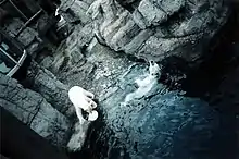In 1994 zoo officials began noting Gus' unusual behavior in his habitat. He was seen swimming back and forth in a figure eight pattern, again and again, for up to 12 hours a day.[3] Such behavior in captive animals usually points to boredom and stress.[10] The zoo hired an animal behavioral therapist at a cost of $25,000 to determine the reason for Gus' obsessive swimming.[3] According to the therapist, "Gus is just bored and mildly crazy in the way that a lot of people are in New York".[2] He ordered an "enrichment program" for the polar bear that included a redesigned habitat, "challenges" at mealtime, new toys and "positive-reinforcement training sessions".[2][3] In 2002 the BBC reported that zookeepers had installed a jacuzzi to "cheer up" Gus.[11] Gus was also the first zoo animal in history to be treated with Prozac.[6][7] After a few months, Gus' obsessive swimming tapered off, but never disappeared entirely.[3] He and his two partners, Lily and Ida, were featured at the 2005 International Conference on Environmental Enrichment.[12]