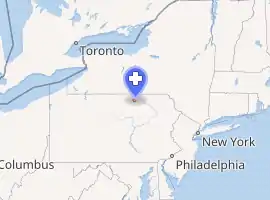 The first hospital was built in 1950 as a 13-bed osteopathic facility. However, its history goes back 6 years before to a remodeled house on King Street opened by Dr. Lawrence Brown, a graduate of the Philadelphia College of Osteopathic Medicine, and Dr. C. H. Couch. A new hospital, the Troy Community Hospital, was planned and opened in 1950 on Elmira Street.[3] It expanded 6 years later to 72 beds with 12 bassinets and was located at 100 John Street.[4] The hospital became part of Guthrie in 1984 and achieved Critical Access Hospital status in 2003. In 2013, a new 25 bed facility was built with an on-site helipad.[1]