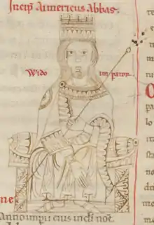 ![]() Guy depicted as emperor in the 12th-century cartulary of San Clemente | |