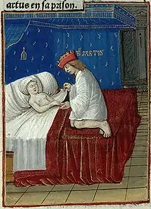 Rachel Bromwich notes, citing the spelling found in Culhwch and Olwen and Triad 84, that Gwenhwyach may in fact be the original spelling of the name.[1] Melville Richards and Bromwich previously suggested that the alternate spelling of her name in medieval Welsh sources, Gwenhwywach, could have been understood as Gwenhwy-fach, or "Gwenhwy the Lesser", a back-formation based on a false etymology of her sister's name as Gwenhwy-fawr, meaning "Gwenhwy the Great".[2][3] It is possible that Gwenhwyfach was once thought of as a darker aspect of Gwenhwyfar.[4]