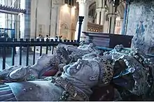 She died in 1454.[35] Gwladys and her husband William ap Thomas were patrons of Abergavenny Priory where they were both buried; their alabaster tomb and effigies can still be seen in the church of St Mary's.[22][36][37]