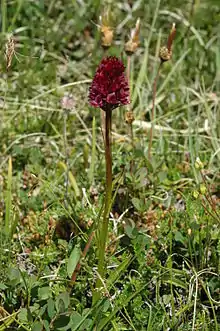 Gymnadenia runei is an orchid of the genus Gymnadenia. It is endemic in Sweden and only found in a few localities in the Tärnaby mountains. It grows in localities like calcium rich meadows in the mountains. The species was discovered by Swedish botanist Olof Rune in 1960 but it was not described as a separate species until 1989, originally under the name Gymnonigritella runei