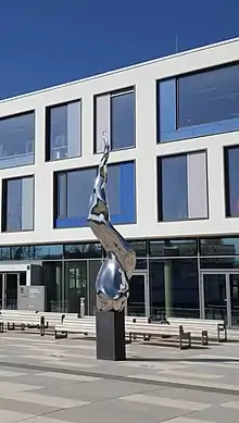 As part of the German Kunst am Bau scheme the School hosts two artworks, Feuer & Flamme by the sculptor, from Bruno Wank, [7] and Stefan Wischnewski's Auf die Plätze.