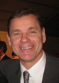 Håkan Per Loob (born 3 July 1960) is a Swedish former professional ice hockey player for Färjestad BK of the Elitserien and the Calgary Flames of the National Hockey League (NHL). He is the head of European Scouting for the Calgary Flames after resigning as president of Hockey Operations for Färjestad.[1] Considered one of the greatest Swedish hockey players of all time, he was inducted into the International Ice Hockey Federation Hall of Fame in 1998 and the Swedish ice hockey Hall of Fame in 2012. The Elitserien created the Håkan Loob Trophy, awarded to the league's top goal scorer, in his honour in 2005 and Färjestad has retired his jersey number 5.