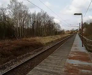 Høvelte is a halt on the Hillerød radial of the S-train network in Greater Copenhagen, Denmark. It is located between Birkerød station and Allerød station and primarily serves Høvelte Barracks. There is only one station platform by the northbound track. Only the five first trains in the morning and the five last trains in the night stop and only at request. On Sundays and in holidays it is the last eleven trains.