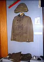 On the morning of a religious festival on 13 August 1915,[2] the regiment’s officers decided to use a site overlooking Anzac Cove near the regiment's field hospital to exchange greetings, as they thought it be out of the enemy’s artillery range. However a howitzer shell exploded 10 metre away followed by a second one which exploded right over their tent. Avni was wounded and missing an arm. As he ly on the ground dying his last words were "give notice to my family, long live the nation".[1] He was 40 years old. His comrades buried him close by. He was succeeded as commander of the 57th Regiment by Major Hayri Bey.[4] Greatly distressed upon hearing about Avni’s death, Mustafa Kemal ordered that his uniform and personal belongings to be sent to his family. His uniform, sword and some relics were later donated by his family to the Military Museum in Istanbul.[1]