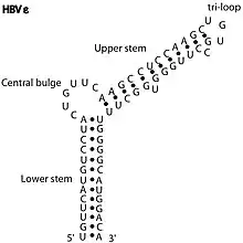 It is an RNA structure situated near the 5' end of the HBV pregenomic RNA.[1] The structure consists of a lower stem, a bulge region, an upper stem and a tri-loop. The structure was determined and refined through enzymatic probing and NMR spectroscopy.[2] The closure of the tri-loop was not predicted by RNA structure prediction programs but observed in the NMR structure. The regions shown to be critical for encapsidation of the RNA in the viral lifecycle are the bulge, upper stem and tri-loop which interact with the terminal protein domain of the HBV viral polymerase.[3][4]
