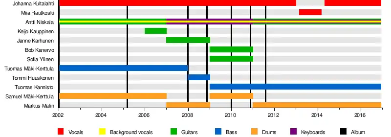 - Johanna Kultalahti (Aaltonen) – vocals (2002–2013, 2014–2016)