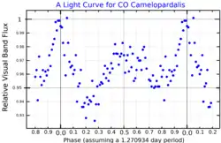 A visual band light curve for HD 106112, adapted from Steinbring et al. (1995)[1]