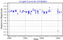 HD 128333 or CH Boötis is an irregular variable star in the northern constellation of Boötes. It is currently on the asymptotic giant branch of the HR diagram.[4]