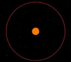 HD 38801 b is an extrasolar, gas giant planet located in the constellation of Orion[3] whose discovery was announced in 2009 and was made using the radial velocity method.[4] The object, with a mass roughly 12 times that of Jupiter,[4] is located 324 light years (99.4 parsecs) from Earth[5][6] orbiting 1.65 astronomical units from its G-type star, HD 38801.[4][7] HD 38801 b, besides being the only planet in its system[5] also lies within the inner habitable zone[6] and takes around 1.9 years, or 693.5 days to complete a full orbit.[4]