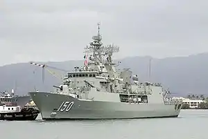 HMAS Anzac (FFH 150) is the lead ship of the Anzac-class frigates in use with the Royal Australian Navy (RAN) and the Royal New Zealand Navy (RNZN). Entering Australian service in 1996, the frigate operated as part of the INTERFET peacekeeping taskforce in 1999. In 2003, she was involved in the Battle of Al Faw, and became the first RAN ship to fire in anger since the Vietnam War. The ship is operational as of 2021.
