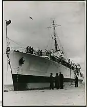 Immediately after the war, Barcoo was tasked with repatriation of soldiers and prisoners-of-war, along with patrols of reoccupied areas.[1] After this, the frigate was docked for an eight-month refit at Williamstown Dockyard to convert her into a survey ship.[2][5] Modification work was completed in July 1946, and the ship began surveying operations in August 1946.[2][5] During her remaining career, she carried the pennant numbers F375 and A245 at various times.[5]