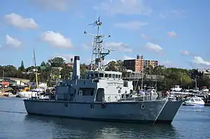 ![]() The former HMAS Rushcutter, underway on Rozelle Bay, New South Wales, in March 2014 | |
