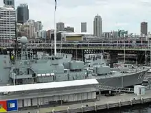 ![]() HMAS Vampire, HMAS Onslow, and the HM Bark Endeavour replica on display at the Australian National Maritime Museum | |