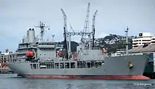 ![]() HMNZS Endeavour berthed at Devonport Naval Base in 2007 | |