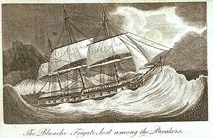 ![]() 'The Blanche frigate, lost among the Breakers' | |