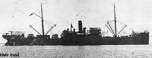 HMS Anne was a seaplane carrier of the Royal Navy used during the First World War. Converted from the captured German freighter Aenne Rickmers, the ship's two aircraft conducted aerial reconnaissance, observation and bombing missions in the Eastern Mediterranean and Red Sea during 1915–17 even though the ship was not commissioned into the Royal Navy until mid-1915. She was decommissioned in late 1917 and became a Merchant Navy collier for the last year of the war. Anne was sold off in 1922 and had a succession of owners and names until she was scrapped in 1958.