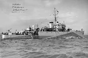Ardrossan was built by Blyth Shipbuilding Company, at Blyth, Northumberland and launched on 22 July 1941. Thus far she has been the only ship of the Royal Navy named after the Scottish town of Ardrossan. She had a relatively quiet wartime career and was sold on 1 January 1948 for breaking up. She arrived at the breaker's yard at Thornaby-on-Tees on 19 August 1948.