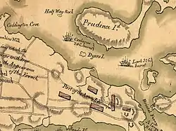 Cerberus was eventually burnt to prevent being captured by the French on 5 August 1778 during the American War of Independence, in Narragansett Bay in Rhode Island.[1][12] The remains of the Cerberus are now part of a site listed on the National Register of Historic Places, the "Wreck Sites of HMS Cerberus and HMS Lark."
