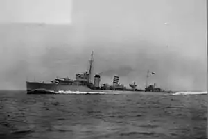After working up, in July 1930 Codridgton joined the 3rd Destroyer Flotilla as part of the Mediterranean as leader.[1] In June 1931, the destroyer returned to Devonport Naval Base for modifications to her turbines, returning to the Mediterranean at the end of the month after the completion of the modifications. Codrington was refitted again at Devonport in September–October 1932, again returning to the 3rd Flotilla.[1] She spent a period in the reserve at Devonport Naval Base, but was refitted in 1938, being recommissioned on completion of the refit in August 1939 in time to participate in the Second World War.
