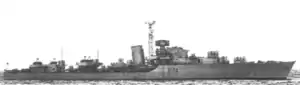 HMS Hogue was a Battle-class destroyer of the Royal Navy that was commissioned during the Second World War. She was named after the Battle of La Hogue, fought between the British and French in 1692; the ship's badge a chess rook on a field blue, within a chaplet of laurel gold was derived from the arms of Admiral Sir George Rooke who distinguished himself at the battle.