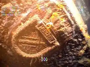 The wreck was discovered on 5 March 2008 by the Royal Norwegian Navy mine control vessel HNoMS Tyr, after being unknown for nearly 70 years, and will be marked as a war grave to commemorate the lost members of her crew.[13] A series of coordinated memorial ceremonies were held on board British and Norwegian warships on Saturday 8 March 2008, honouring all those who died during the battles of Narvik. Over a thousand NATO personnel took part, including British and Norwegian sailors, Royal Marines and soldiers. Led by HMS Albion, the UK's Fleet Amphibious Flagship, five warships steamed in line past the spot where the ship lies, marked for the occasion by Tyr. Hunter's final resting place was marked with wreaths cast into the sea.[14]