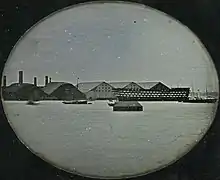 HMS Marlborough was a first-rate three-decker 131 gun screw ship built for the Royal Navy in 1855. She was begun as a sailing ship of the line (with her sister ships HMS Duke of Wellington, HMS Prince of Wales and HMS Royal Sovereign), but was completed to a modified design and converted to steam on the stocks, and launched as a wooden steam battleship.