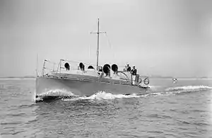 ![]() The motor launch assigned to HMS Mercury II underway during the Second World War | |