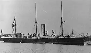 ![]() HMS Porpoise anchored in Sydney Harbour in 1900. | |