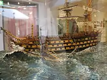 HMS St George was a 98-gun second rate ship of the line of the Royal Navy, launched on 14 October 1785 at Portsmouth.[1] In 1793 she captured one of the richest prizes ever. She then participated in the Naval Battle of Hyères Islands in 1795 and took part in the Battle of Copenhagen in 1801. She was wrecked off Jutland in 1811 with the loss of almost all her crew.