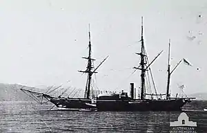 In 1851 she was sent to the Pacific Station. Under the command of Commander Willam Stewart, she participated with the assistance of two Chilean ships: Indefatigable and Meteoro in the recapture of Punta Arenas in the Strait of Magellan, which had been subject to a mutiny.[3]