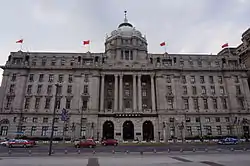 The HSBC Building (also known as the Municipal Government Building) is a six-floor neo-classical building in the Bund area of Shanghai, China. It served as the headquarters of the Shanghai branch of The Hongkong and Shanghai Banking Corporation from 1923 to 1955, and currently houses the Shanghai Pudong Development Bank. The building is situated at number 12, the Bund. Designed by the British architecture firm Palmer & Turner Architects and Surveyors, construction of the building lasted from 5 May 1921 to 23 June 1923.