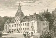 Prince Carl was born on 3 August 1872 at his parents' country residence, Charlottenlund Palace north of Copenhagen, during the reign of his paternal grandfather, King Christian IX.[3] He was the second son of Crown Prince Frederick of Denmark (the future King Frederick VIII), and his wife Louise of Sweden.[3] His father was the eldest son of King Christian IX and Louise of Hesse-Kassel, and his mother was the only daughter of King Charles XV of Sweden (who was also king of Norway as Charles IV), and Louise of the Netherlands. At birth, he was third in the succession to the Danish throne after his father and older brother, but without any real prospect of inheriting the throne. The young prince was baptised at Charlottenlund Palace on 7 September 1872 by the Bishop of Zealand, Hans Lassen Martensen. He was baptised with the names Christian Frederik Carl Georg Valdemar Axel, and was known as Prince Carl (namesake of his maternal grandfather the King of Sweden-Norway).[3]