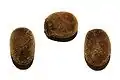 About eight weeks after the insects have molted to become adul, the females begin to lay eggs. The barrel-shaped to spherical, brown eggs are sunk a few centimeters deep into the ground with theovipositor at night. They are 7 millimetres (0.28 in) long and 5.5 to 5.9 millimetres (0.22 to 0.23 in) wide. As with most Haaniella species, they are provided with fine and short hairs so that they appear to have a velvety surface. The cruciform micropylar plate is difficult to see because of the hairs. The micropyle is located in the lower angle of the cross formed from diagonal arms. It can take a whole year for the nymphs to hatch. It takes another nine months for them to grow into imago. After that, the animals can live for up to two years, with the productivity of the females gradually decreasing.[3]