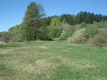 After 1945, the irrigated meadows lost their economic importance and were planted with spruce monoculture, a tree inappropriate to the local environment, on a significant scale, especially downriver of Erlenfurt. In 2007 to 2009, around 10 hectares of spruce forest was removed by logging. The area is now kept clear of trees by goats or cattle. Among the animals used for the purpose are water buffalo. Where the terrain is too wet for grazing, wetland forests of mixed hardwood trees are being created.[10]