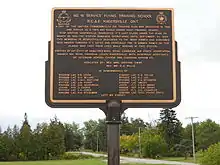 During World War II No. 16 Service Flying Training School RCAF was estavlished by the Royal Canadian Air Force as part of the British Commonwealth Air Training Plan[4][5] at 274 Concession 11 Walpole 3.5 km (2.2 mi) southwest of Hagersville. No. 16 SFTS opened on 8 August 1941 and closed on 30 March 1945. After the RCAF finished with the site it was used by the Canadian Army for various purposes and was known as Camp Hagersville. The camp was closed in 1964.[6] Between the 1960s and 1990s, the camp was used as a residence for youth and then a flea market. As of 2013 the site was an industrial park. Some of the military homes are still there, and the housing area is known as "White Oaks Village". A good view of the site and the old hangars is had from Concession 10 Walpole. The base was located at 42°55′42″N 080°07′33″W.[7]