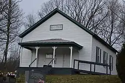 Haines Chapel, together with the South Mountain Cemetery, is a historic property located near the Blue Ridge Parkway in Rockbridge and Nelson Counties in the U.S. state of Virginia. The site is located just west of the parkway and north of Virginia Route 56 (Tye River Turnpike). The cemetery apparently began as a family cemetery in the 18th century; its oldest dated grave marker is a modern one dated 1793, although the oldest legible stone gives a date of 1857. The chapel, a simple wood-frame building constructed in 1914, stands on the Nelson County side of the property. Its interior contains well-preserved period woodwork, and is largely in original condition, including a period piano and organ. It is still used occasionally for services and special occasions, and the cemetery is also open to new burials.[2]
