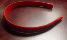 A headband is a clothing accessory worn in the hair or around the forehead, usually to hold hair away from the face or eyes. Headbands generally consist of a loop of elastic material or a horseshoe-shaped piece of flexible plastic or metal. They come in assorted shapes and sizes and are used for both practical and fashion purposes.